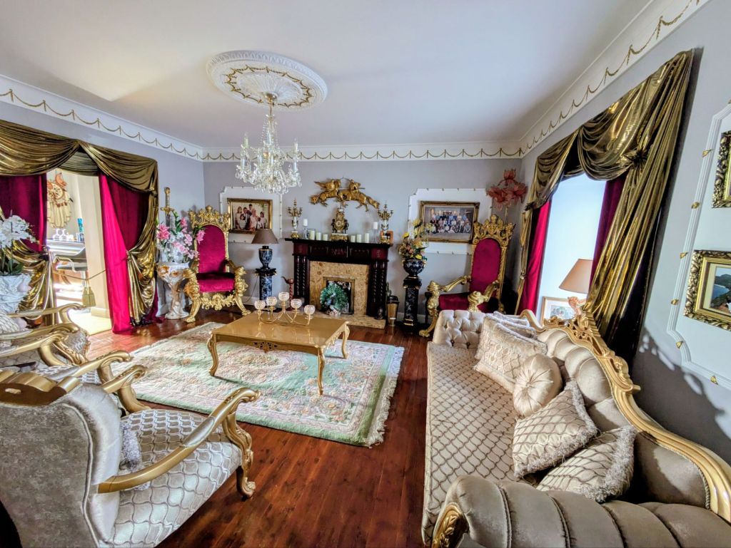 Refreshed, we make our way to tonight’s B&B. A few days ago we stayed at a hotel I referred to as swanky, which it was in a very understated and refined way. Tonight’s accommodations might also be described by some as swanky, but in a low level Russian oligarch inspired by Mar-a-Lago kind of way. We settle right in, draping wet cycling clothes on the Rococo furniture.